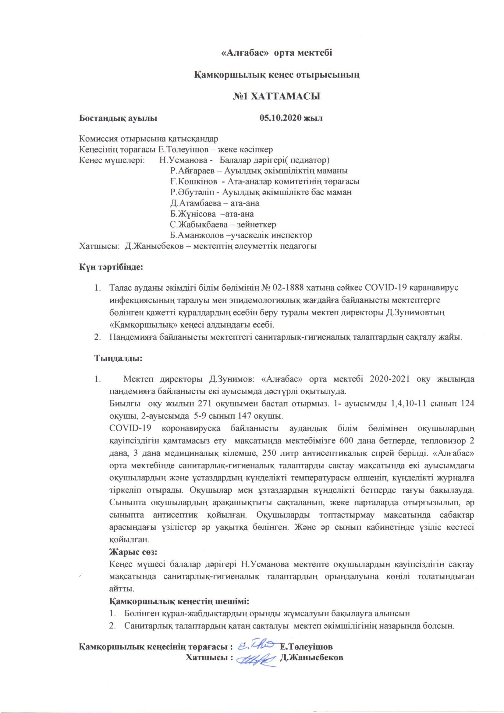 » Қамқоршылық кеңесі отырысының хаттамасы